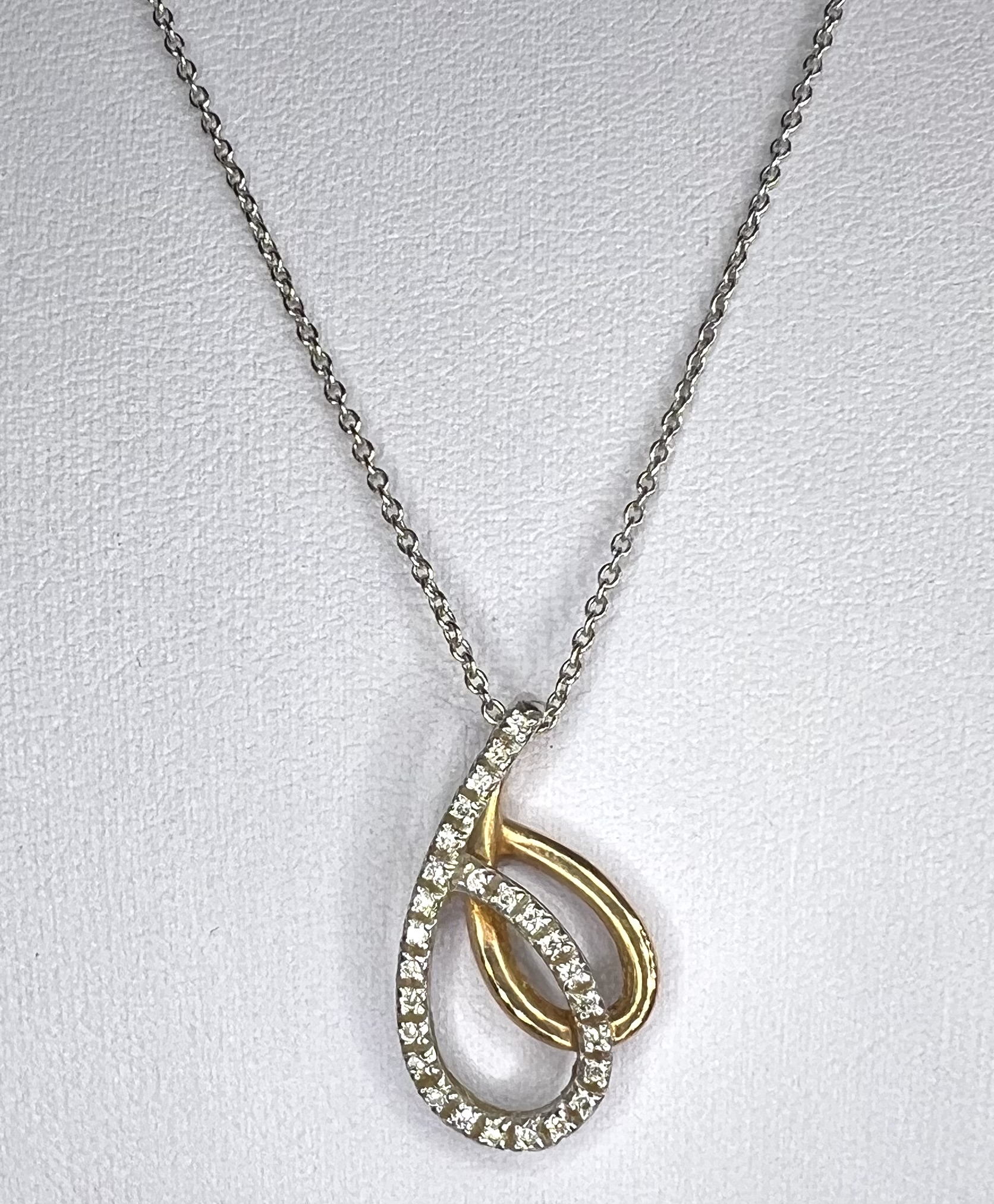 This stunning second hand 18ct white and rose gold diamond pendant exudes elegance and sophistication.
