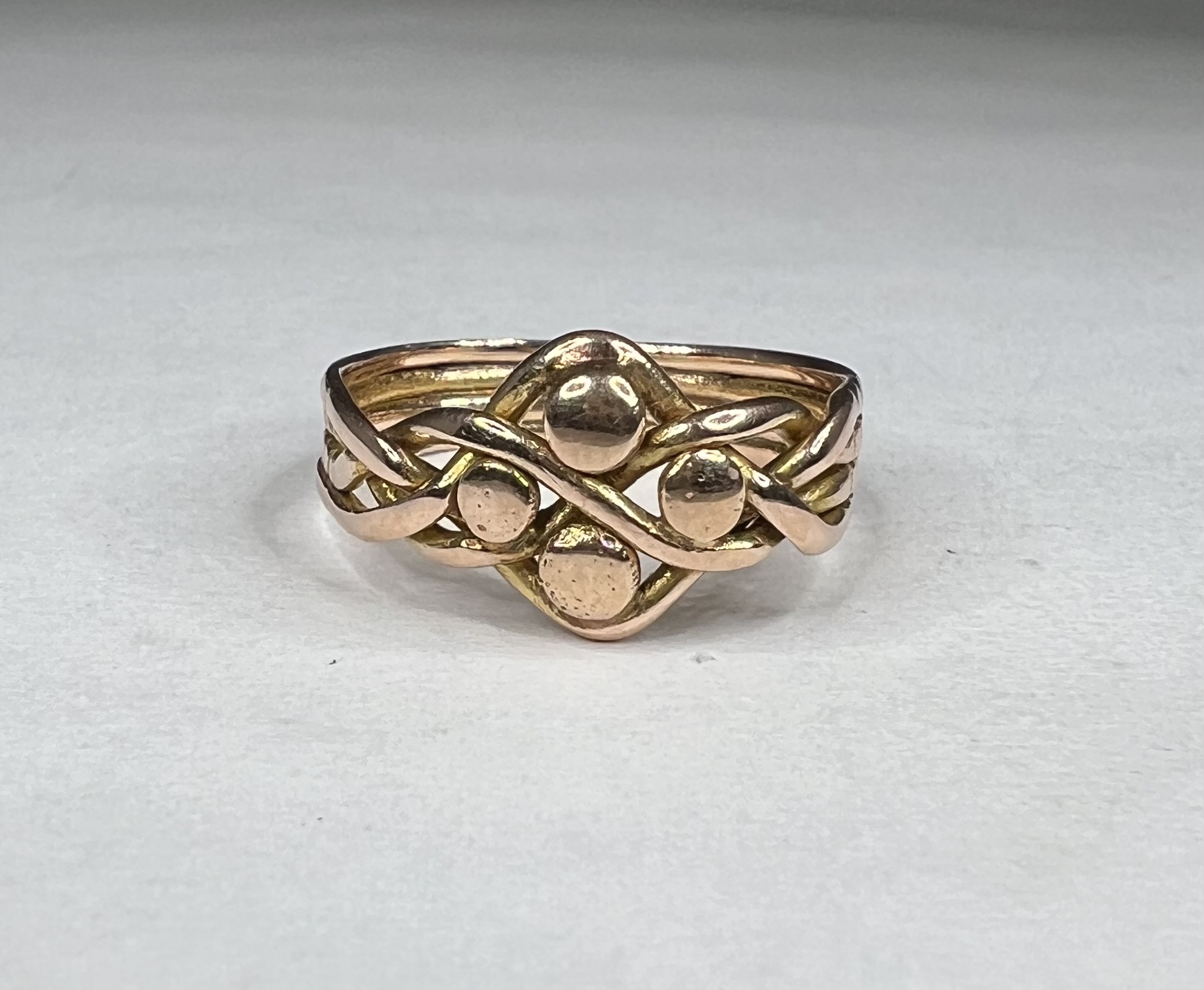 This Second Hand Vintage 9ct Rose Gold Puzzle Ring offers a beautiful blend of elegance and intrigue.