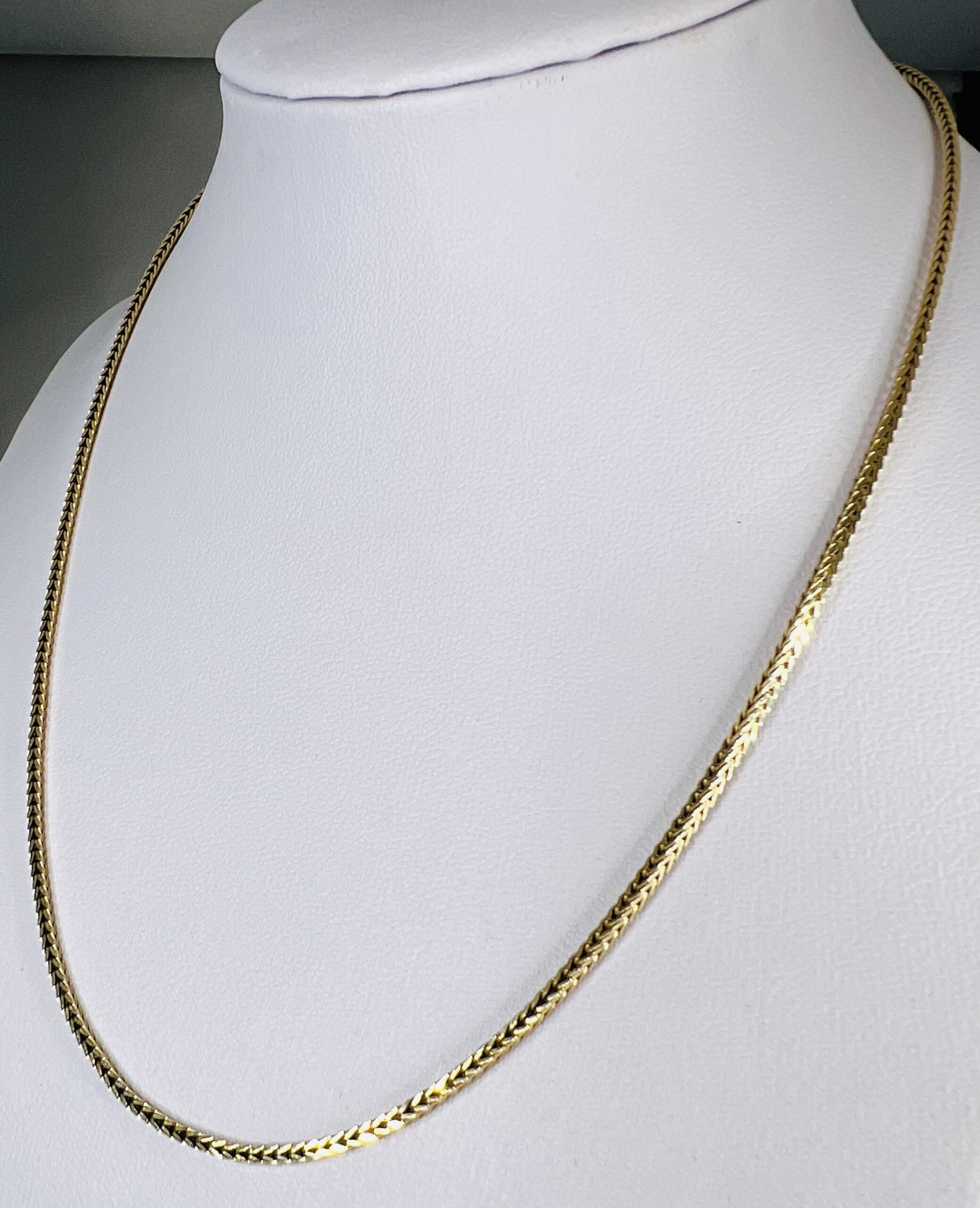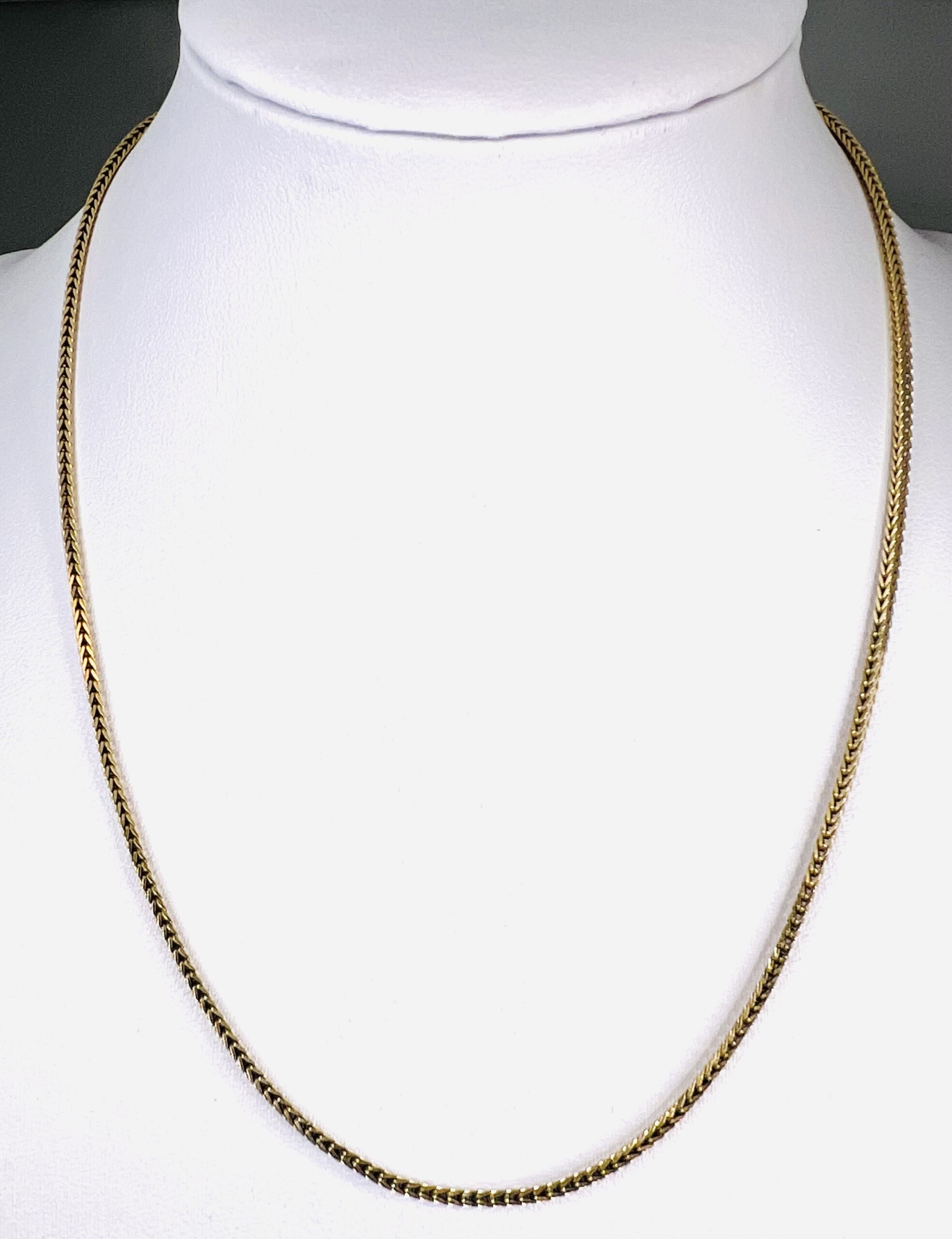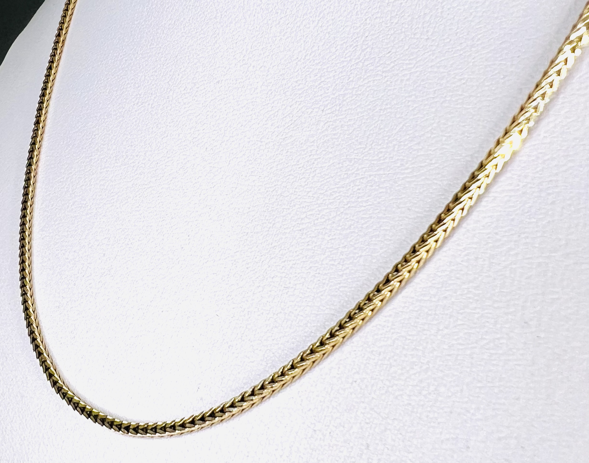 The intricate foxtail pattern gives the chain a textured, elegant appearance, making it perfect to wear alone for subtle sophistication or paired with a pendant for a personalised touch.