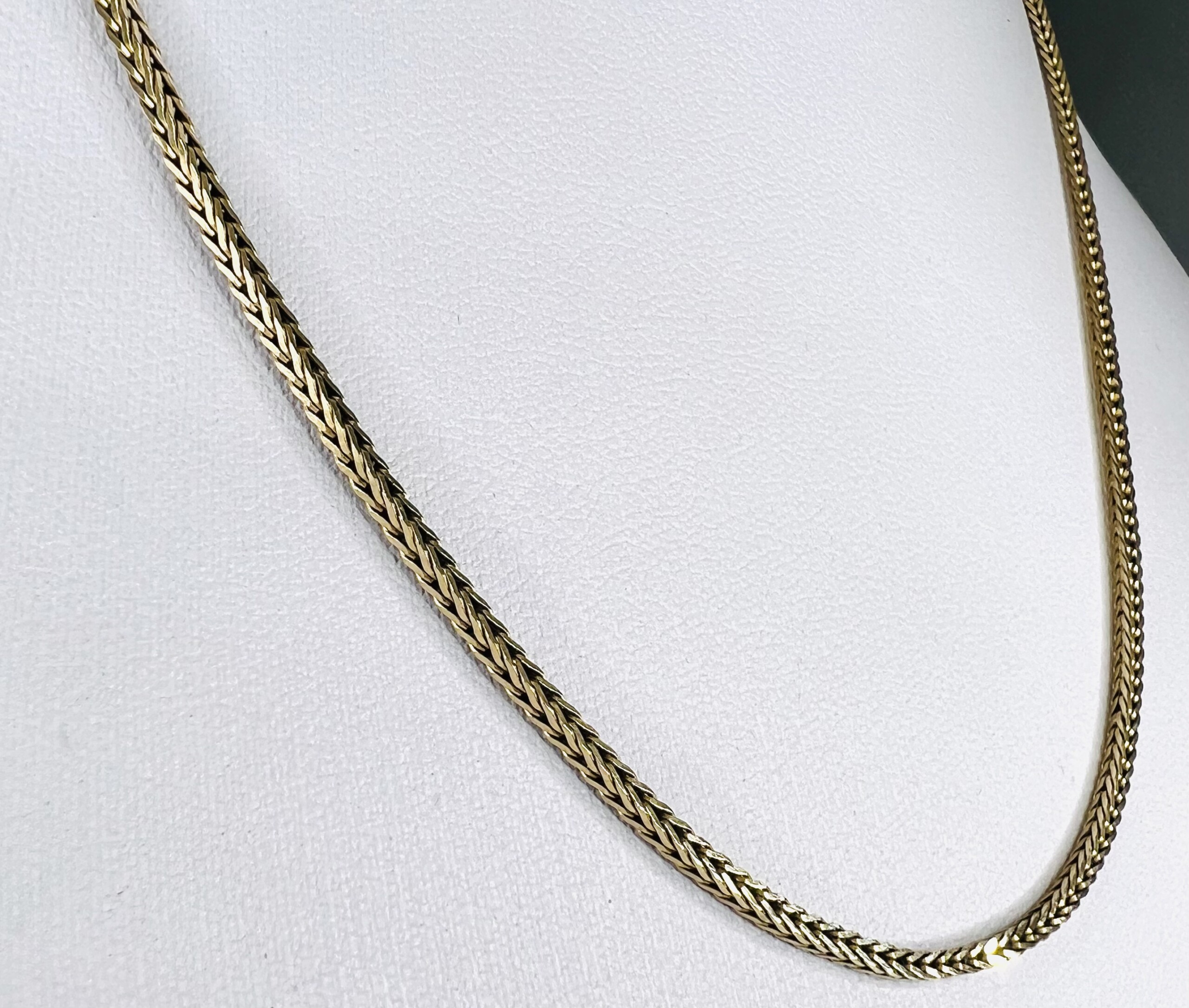 This second hand 9ct yellow gold foxtail chain is a beautifully crafted piece with a three-dimensional link design that catches the light from every angle.