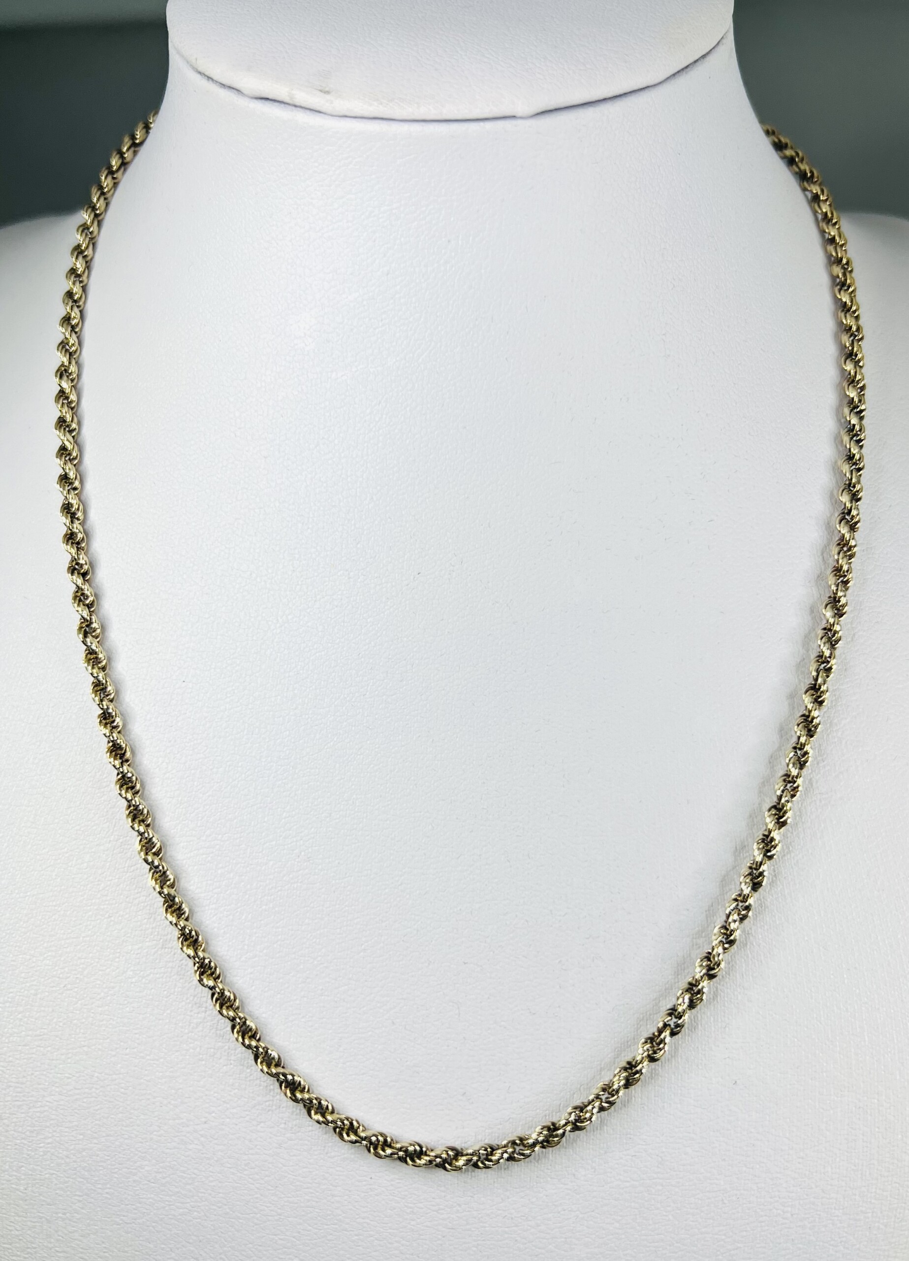 This second hand 9ct yellow gold solid rope chain is a truly special piece. Measuring 17 inches in length, it features the classic rope design that catches the light beautifully.